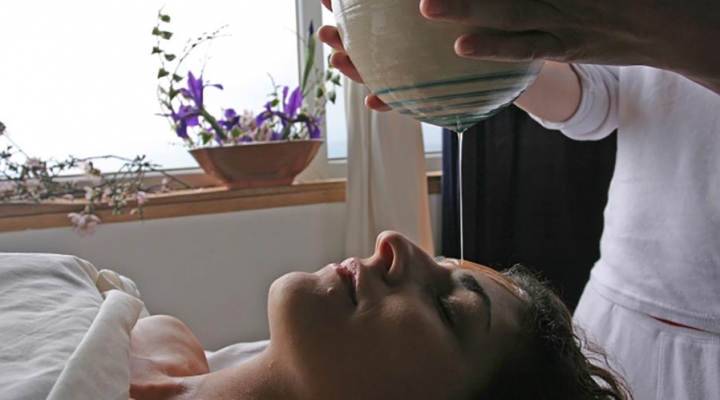 טיפול בשמן שומשום חם. מבוסס על תורה הודית המרפאה באמצעות יצירת הרמוניה של המטופל עם הטבע.